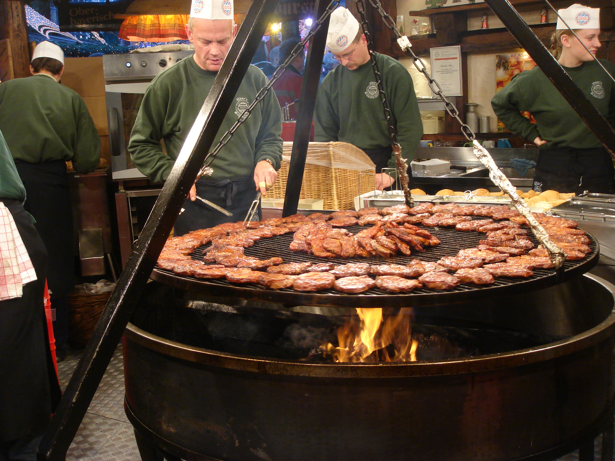 There’s something of a mystery to Spießbraten. It has a taste and texture that is completely unique, but reached through means so… ordinary, that one finds it difficult to come to terms with the juxtaposition. Essentially, the thick meat slab (which can be pork or beef, but is most often pork loin) is cooked over a wood-flame grill suspended from the ceiling. It looks like this: