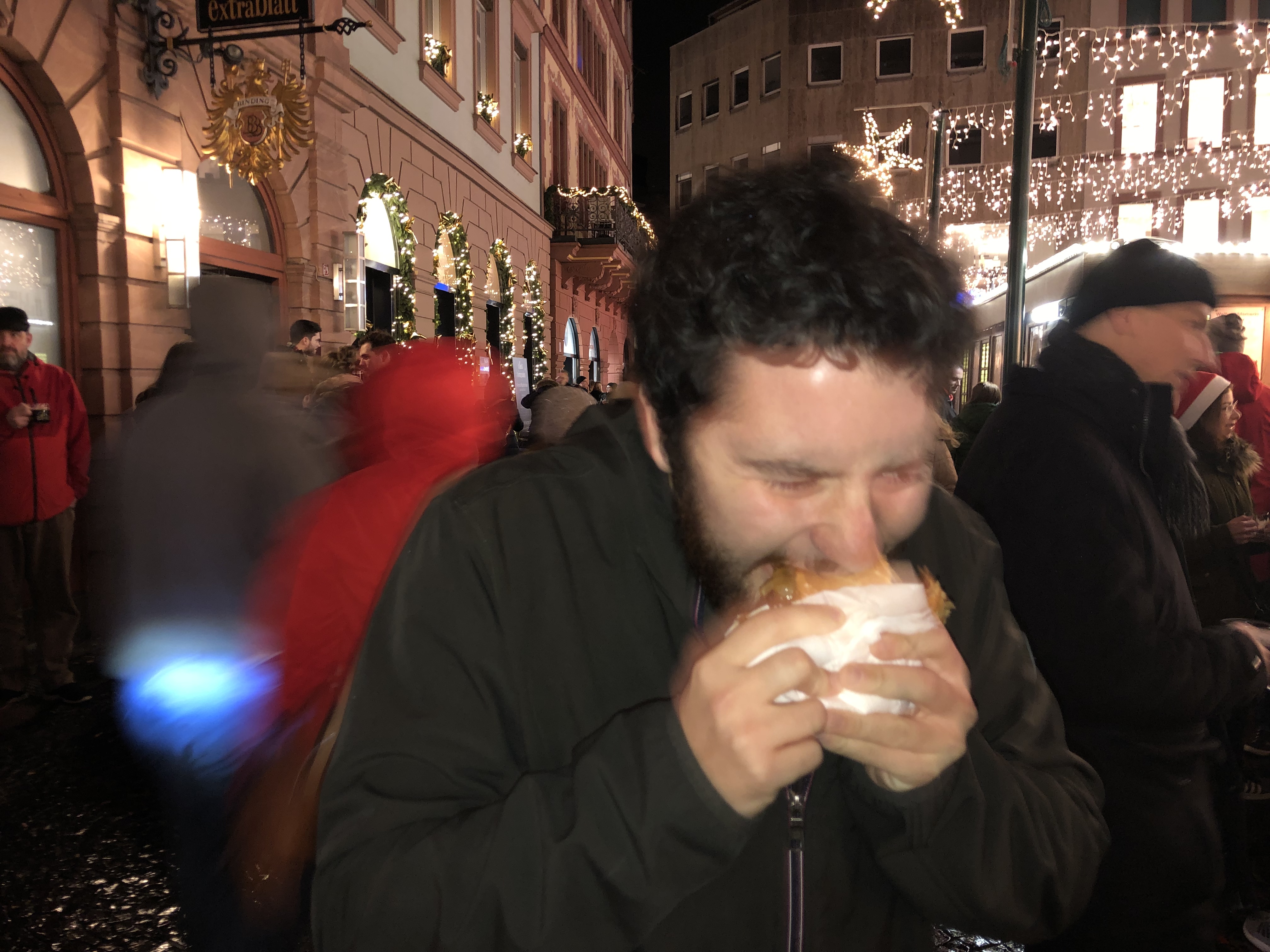I knew going in that I would enjoy Spießbraten, but I didn’t expect to be genuinely surprised by the amount of flavor it has packed into it. As the rains continued and the month stretched ahead in a vision of countless more delights to come, I finished the first of many sweet, sweet meats offered by the Weihnachtsmarkt.