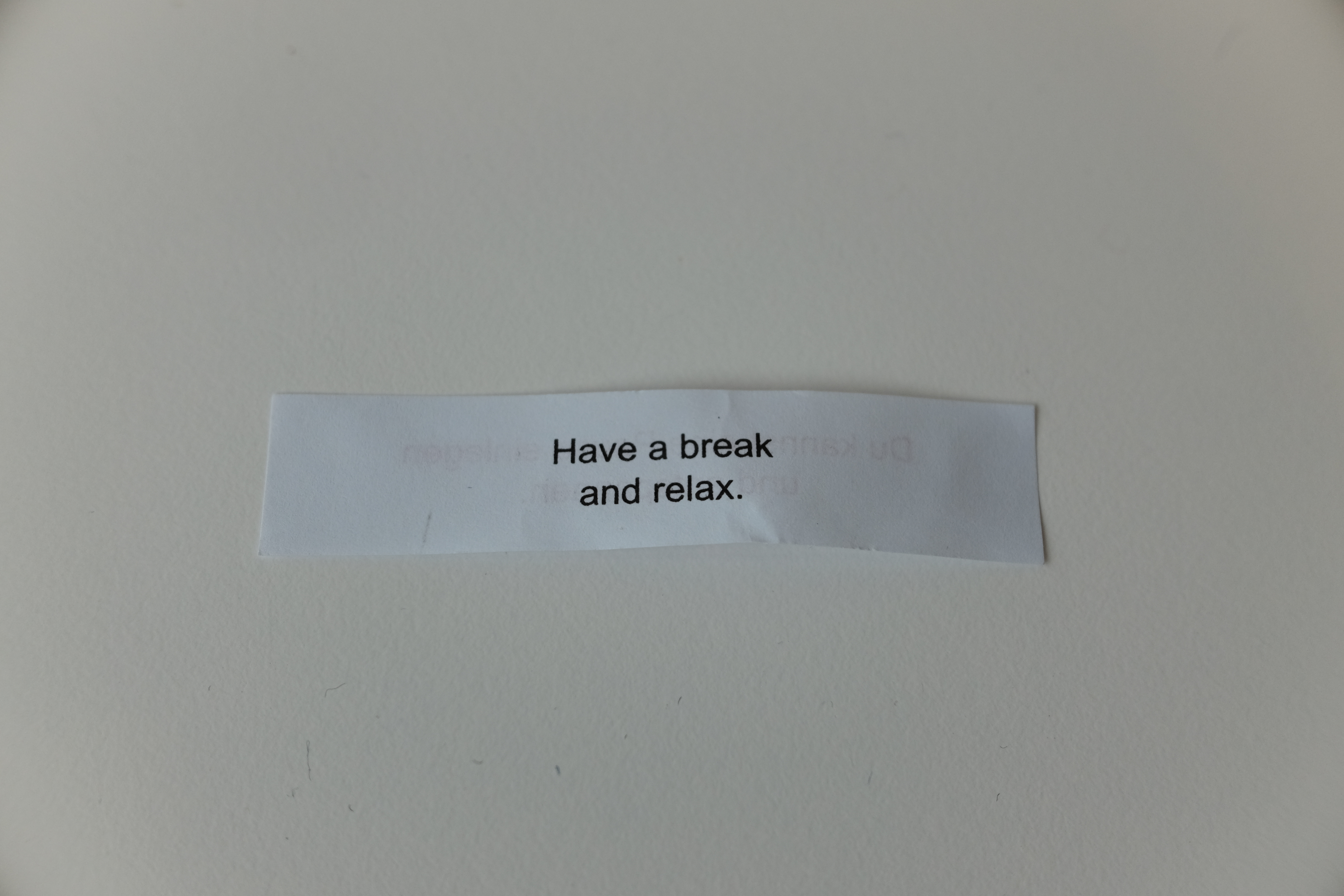 Two to three days a week, my coworkers hit up this Thai place called Lemongrass (or something, I don’t really know) and like all Asian places that don’t want to get review-bombed for daring to make it only about the food, this place offers fortune cookies. That’s right, a Thai restaurant in Germany offers Fortune cookies because some dude in San Francisco in 1918 stole a Japanese cookie idea (that he undoubtedly just called ‘oriental’) and made it popular. It gets me wondering as well, you ever notice that since your very first fortune cookie, people have complained that they don’t tell fortunes anymore? My first memory of a fortune cookie is from when I was five, back in 1999. That’s 23 years ago now, And guess what, I remember the adults bickering about it back then, as well: “These aren’t fortunes! Remember when they used to tell fortunes?” Did they? I’m actually wondering, now. Did they ever do that? Does anyone remember a fortune cookie that has told a fortune, a genuine prophecy? Maybe that was always too much to put on the lowly typists in Guangzhou, China, who have been CTRL+C ->CTRL+V’ing the same 200 ‘fortunes’ since 2005. These are 8 year old we’re talking about. But this time, I did sincerely enjoy my message. I will look back on it fondly every time I take its advice. I would love to see it get even more casual, though. For my next cookie, I want it to just say, “take a load off”, like the paper message thinks I’m inside the cookie and it wants me to be comfortable. I’d like that.