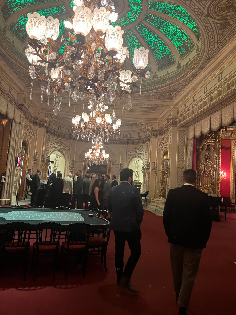 Calm down, calm down. For some reason, even though we saw dudes wearing hoodies underneath their blazers, the authorities at the casino did not find Joshy’s attire 100% appropriate for entry, and required him to don a real sport jacket and leave his strange British looking thing behind. The teller at the front desk sent him to the attire specialist, a bald man with glasses, who only smiled and laughed upon looking Joshy up and down. He decided that even though yes, the kid needed a new jacket, he would give the kid a break and not charge him (usually 8 euros for the night) nor for entry at the door (5 euros).