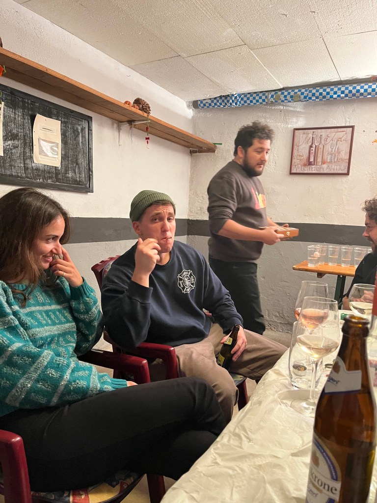 I’ll say it gets hazy from there, and we’re reaching the limit of my comfortable length on this one, but I can’t go without describing the end. Tobi’s friend Felix, bless him, tried to play me in chess when he literally couldn’t close his hands to grab things without making a King Kong fist (see picture above of me bringing the chess set over and Felix’s girlfriend Eleftheria just laughing because what he’s asking is insane). And at one point Tobi sat me down and said “look man, this is my parent’s place… Look at all this. I’m so drunk dude. I’m so…” and then stood up when a new song came on, started dancing, and eventually climbed onto the table to do a performance for everyone and almost Buffalo-Bills-table-slammed himself. At the very end of the night, it was just me, Vici, Joshy, and Tobi and Felix. I tried saying I didn’t wanna leave until I saw them go to sleep, but Tobi put it bluntly: “we’ve done this a lot, Nick. I get you, but… just fuck off. Come back for breakfast tomorrow.” When the time came to be a man, by god did Tobi deliver.