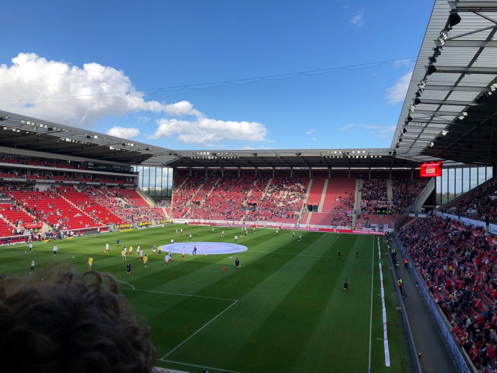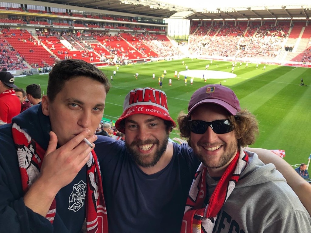 We got scarves, we got beers, I hocked down a Feuerwurst and we yelled in the standing-room only section as the teams settled for a tie in the end. We grabbed our third major