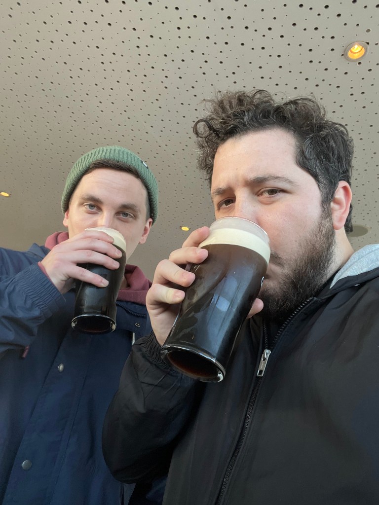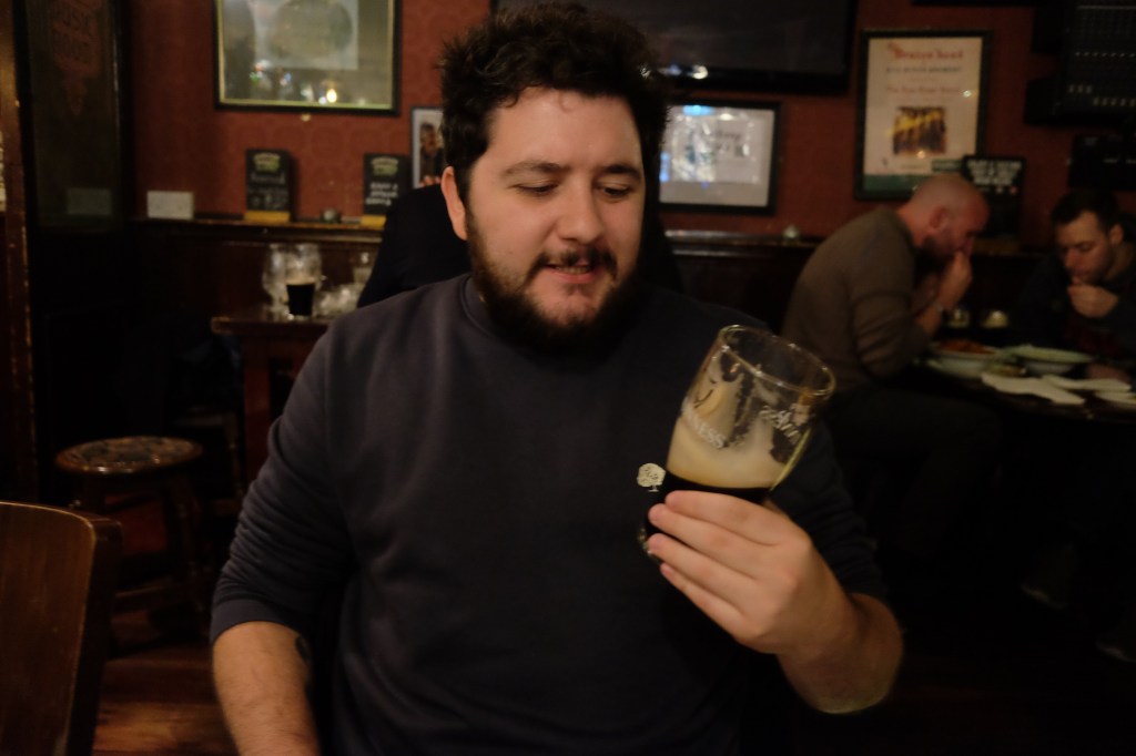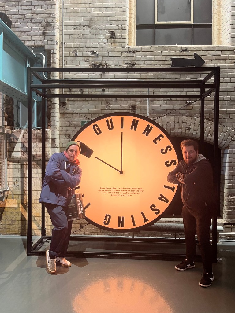 Oh the Guinnesses poured, their frothy nitrogen head gleaming from every glass. We saw the Factory, stinking up the city for miles with malted barley and hops. We even had one of those faces in the beer things.